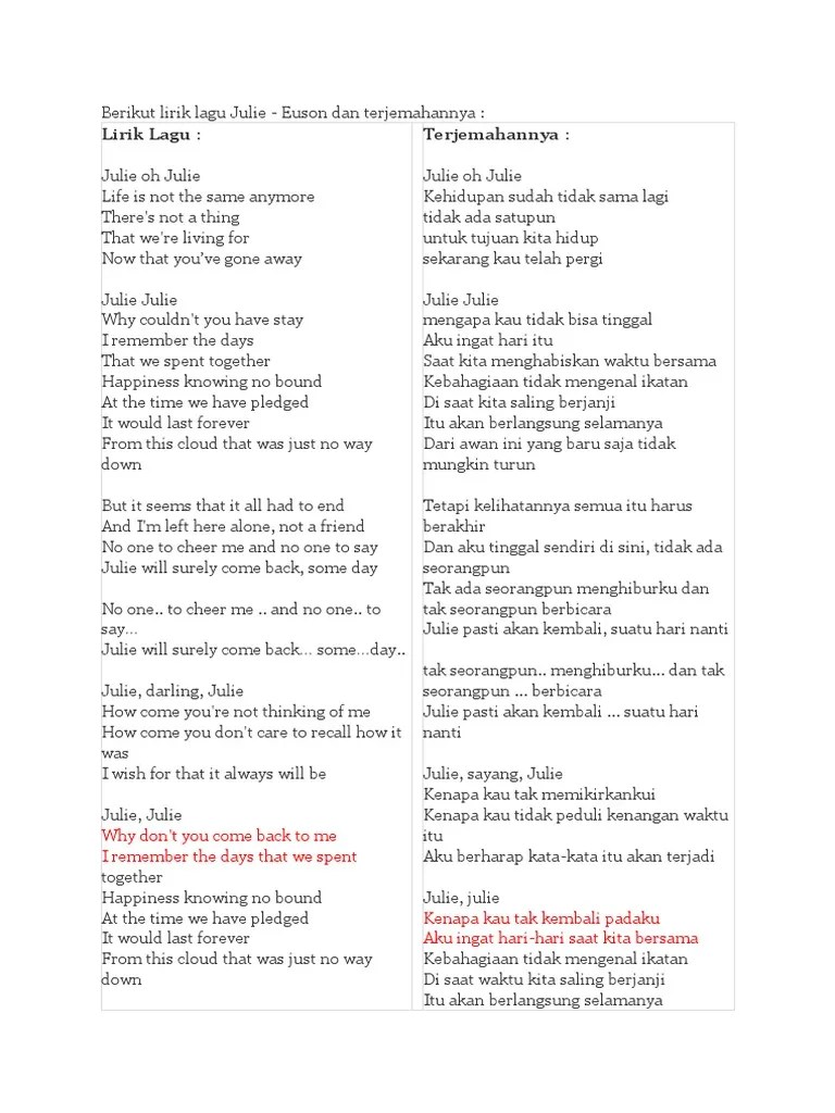 Berikut cuplikan syair nyanyian / teks dari lagunya: